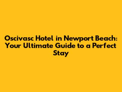 Oscivasc Hotel In Newport Beach: Your Stay Guide