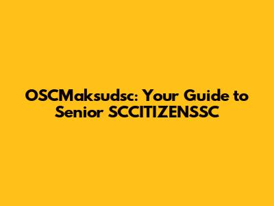 OSCMaksudsc: Your Guide To Senior SCCITIZENSSC