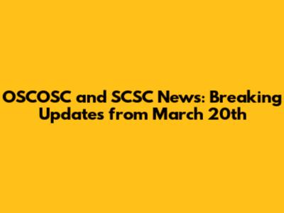 OSCOSC And SCSC News: Breaking Updates From March 20th
