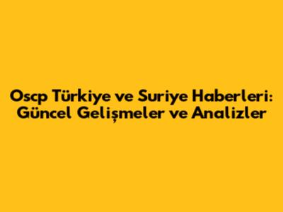 Oscp Türkiye Ve Suriye Haberleri