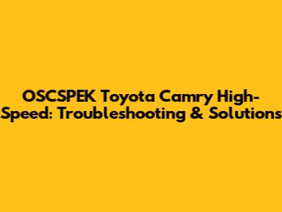 OSCSPEK Toyota Camry High-Speed: Troubleshooting & Solutions