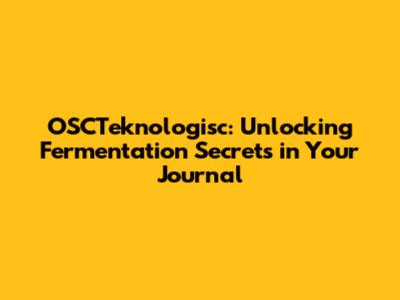 OSCTeknologisc: Unlocking Fermentation Secrets In Your Journal