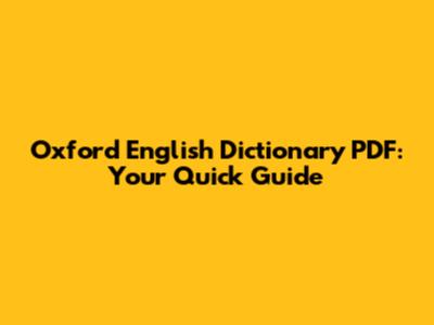 Oxford English Dictionary PDF: Your Quick Guide