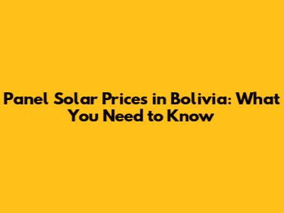 Panel Solar Prices In Bolivia: What You Need To Know