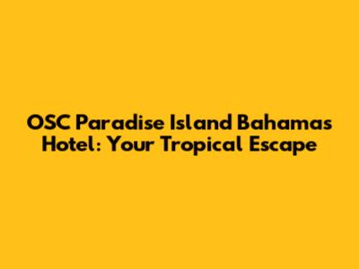 Hey everyone! Are you dreaming of a getaway? Thinking about turquoise waters, sunshine, and a place where your worries melt away? Well, let me tell you about OSC Paradise Island in the Bahamas – a seriously amazing hotel that might just be your next vacation spot. I'm going to walk you through everything you need to know, from the killer amenities to why this place is a total winner. So, grab a drink (maybe something tropical!), and let's dive into what makes OSC Paradise Island such a fantastic choice for your next escape. We'll cover everything from the rooms and dining options to the activities and what makes it special. Trust me, by the end of this, you'll be itching to book your trip!