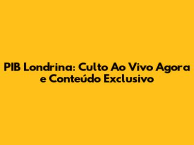 PIB Londrina Culto ao Vivo Agora: Bem-vindos, pessoal! Se você está buscando acompanhar o culto ao vivo da PIB Londrina e ficar por dentro de todo o conteúdo exclusivo que a igreja oferece, você chegou ao lugar certo. Neste artigo, vamos mergulhar em tudo o que você precisa saber sobre os cultos ao vivo, as programações, e como a PIB Londrina está conectando a comunidade através da fé e da tecnologia. Prepare-se para uma experiência enriquecedora e cheia de inspiração!