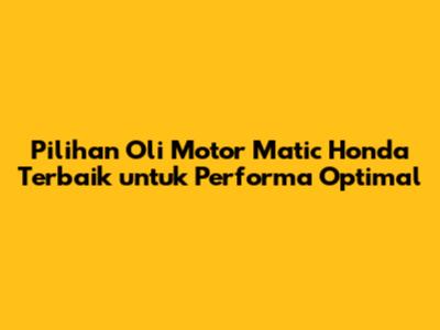 Pilihan Oli Motor Matic Honda Terbaik Untuk Performa Optimal