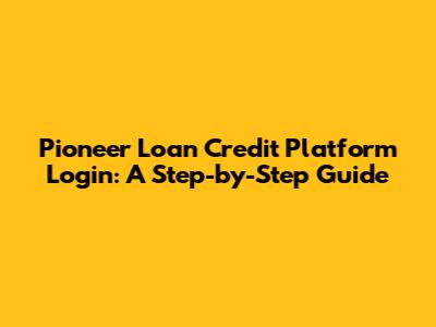 Pioneer Loan Credit Platform Login Guide