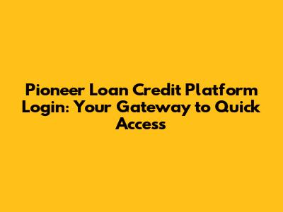 Hey everyone! Let's talk about getting logged into the Pioneer Loan credit platform. It's super important to know how to access your account easily, whether you need to check your balance, make a payment, or just review your loan details. This guide is all about making that login process a breeze, so you can manage your finances without any hassle. We'll walk through the steps, offer some troubleshooting tips, and make sure you feel confident navigating the platform. Remember, pioneer loan credit platform login is your first step to financial control.