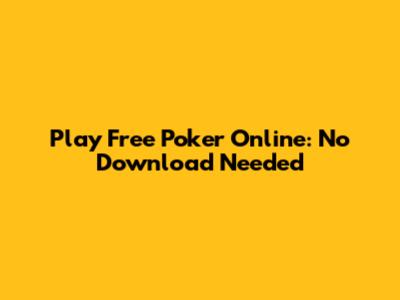 Play Free Poker Online: No Download Needed