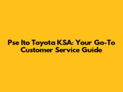 Pse Ito Toyota KSA: Your Go-To Customer Service Guide