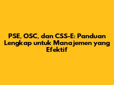 PSE, OSC, Dan CSS-E: Panduan Lengkap Untuk Manajemen Yang Efektif