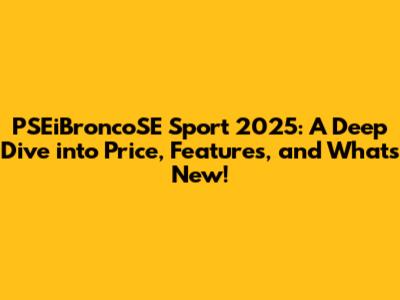 PSEiBroncoSE Sport 2025: Price, Specs, And More!