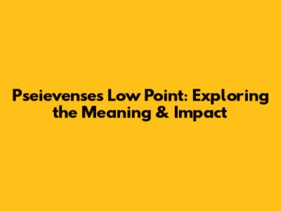 Pseievense's Low Point: Exploring The Meaning & Impact