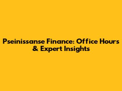 Hey guys! Ever felt lost navigating the world of finance? You're definitely not alone! That's why we're diving deep into Pseinissanse Finance and their awesome office hours. Think of it as your personal guide to understanding everything from investments to retirement planning. We'll cover what Pseinissanse Finance is all about, why their office hours are a total game-changer, and how you can make the most of them. Get ready to level up your financial knowledge!