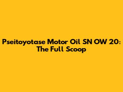 Pseitoyotase Motor Oil SN OW 20: The Full Scoop