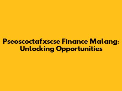 Pseoscoctafxscse Finance Malang: Unlocking Opportunities
