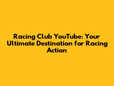 Unveiling the Racing Club YouTube Channel: What Makes it Special?