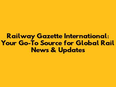 Railway Gazette International: Latest Global Rail News & Updates