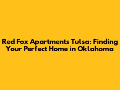 Hey guys! So, you're on the hunt for a new place to live in Tulsa, Oklahoma, and you've heard whispers about Red Fox Apartments. Awesome choice! Tulsa is an amazing city, full of life, culture, and, of course, some seriously cool apartment options. Finding the right apartment can feel like a quest, but don't sweat it. This guide is your treasure map, leading you straight to the heart of what makes Red Fox Apartments a great place to call home. We'll dive into everything from location and amenities to what people are saying, helping you decide if this is the perfect spot for you. Let's get started and unearth everything you need to know about Red Fox Apartments in Tulsa, Oklahoma.