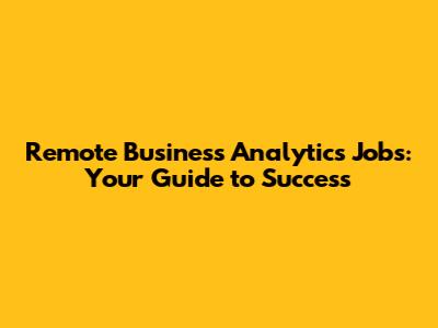 Remote Business Analytics Jobs: Your Guide To Success