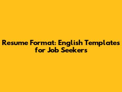 Resume Format: English Templates For Job Seekers