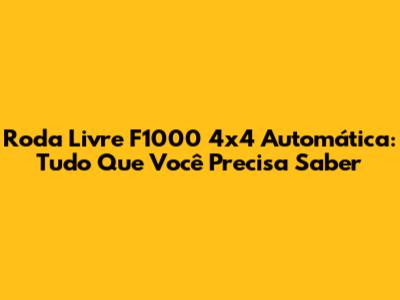 Roda Livre F1000 4x4 Automática: Tudo Que Você Precisa Saber