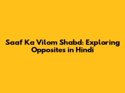Saaf Ka Vilom Shabd: Understanding Opposites In Hindi