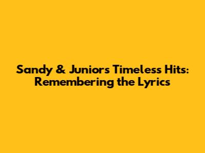 Hey music lovers! Remember the days when Sandy & Junior ruled the airwaves? Their songs were the soundtracks to so many of our lives, right? From catchy tunes to heartfelt ballads, this dynamic duo gave us some seriously unforgettable music. Let's take a trip down memory lane and revisit some of Sandy & Junior's iconic songs, focusing on those classic lyrics that we all know and love. We'll dive into the meaning behind the words, reminisce about the moments they soundtracked, and maybe even sing along a little! Ready to get nostalgic, guys? Let's do this!