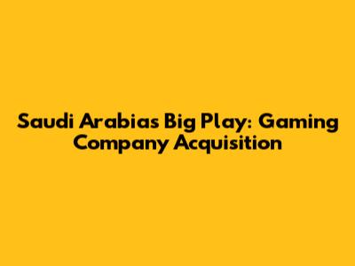 Saudi Arabia's Big Play: Gaming Company Acquisition