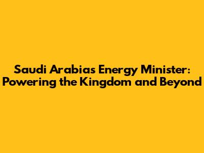 Saudi Arabia's Energy Minister: A Deep Dive