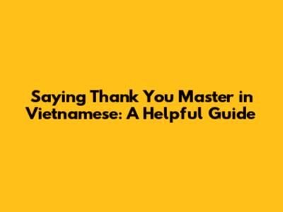 Saying 'Thank You Master' In Vietnamese: A Helpful Guide