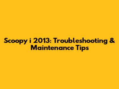 Scoopy I 2013: Troubleshooting & Maintenance Tips