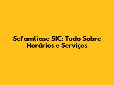 Sefamliase SIC: Tudo Sobre Horários E Serviços