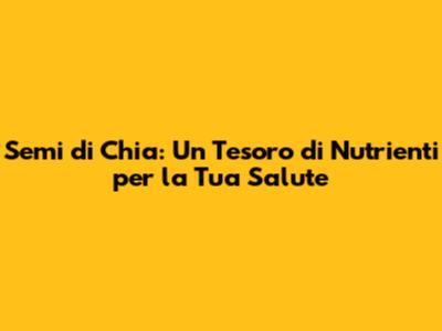 Ciao amici! Oggi vi porto alla scoperta di un piccolo superfood che sta conquistando il mondo: i semi di chia. Questi minuscoli semi, originari del Messico e del Guatemala, sono un vero e proprio concentrato di nutrienti, capaci di portare numerosi benefici alla nostra salute. In questo articolo, esploreremo a fondo i valori nutrizionali dei semi di chia, come inserirli nella nostra alimentazione quotidiana e perché dovremmo considerarli un alleato prezioso per il nostro benessere. Preparatevi a scoprire tutto quello che c'è da sapere su questi fantastici semi!