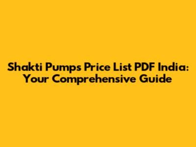 Finding the latest Shakti Pumps price list PDF in India is usually quite straightforward, and here's how to do it: