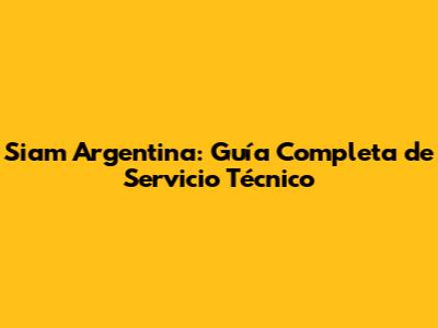 Siam Argentina: Guía Completa De Servicio Técnico