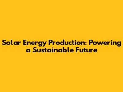 Solar Energy Production: Powering A Sustainable Future