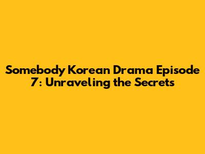 Somebody Korean Drama Episode 7: Unraveling The Secrets