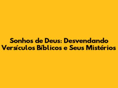 Sonhos de Deus são um tema fascinante e cheio de nuances na Bíblia. Ao longo das Escrituras, Deus se comunica com seus servos de maneiras diversas, e os sonhos ocupam um lugar de destaque. Mas, afinal, o que a Bíblia diz sobre os sonhos? Quais versículos podemos estudar para entender melhor essa forma de comunicação divina? E como podemos interpretar os sonhos à luz da fé? Neste artigo, vamos mergulhar no universo dos sonhos na Bíblia, explorando versículos chave, seus significados e a importância de discernir a vontade de Deus em nossas vidas.