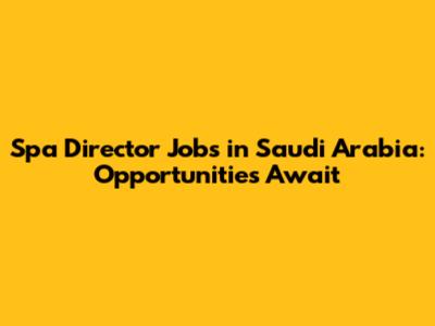 Spa Director Jobs In Saudi Arabia: Opportunities Await
