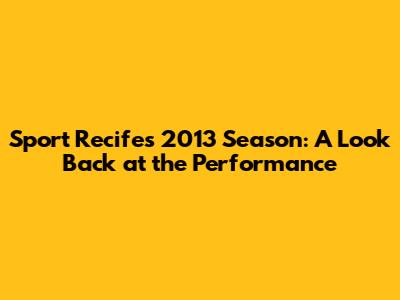 Sport Recife's 2013 Season: A Look Back At The Performance