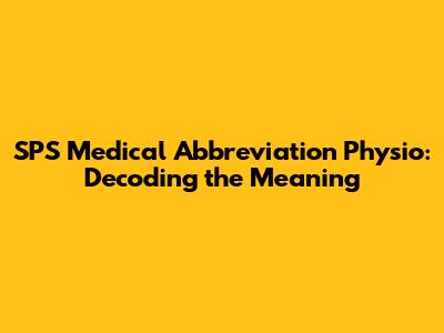 Ever stumbled upon the abbreviation SPS in a medical document or during a physiotherapy session and wondered what it meant? You're not alone! Medical jargon can be confusing, with acronyms and abbreviations popping up everywhere. In this article, we'll break down the meaning of SPS, particularly in the context of physiotherapy and medicine. Understanding these terms is crucial for both healthcare professionals and patients to ensure clear communication and effective treatment. So, let’s dive into the world of medical abbreviations and decode what SPS really signifies.