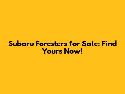 Subaru Foresters For Sale: Find Yours Now!