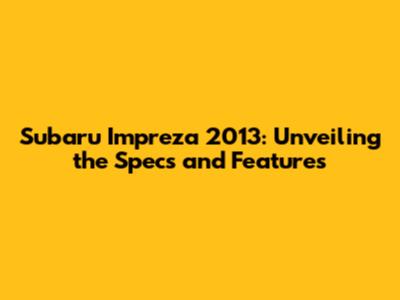 Subaru Impreza 2013: Specs, Features, And More!
