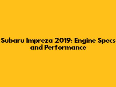 Subaru Impreza 2019: Engine Specs And Performance