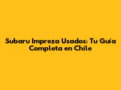 ¿Dónde Buscar Subaru Impreza Usados en Chile?