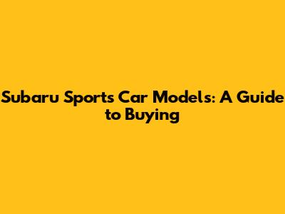 Subaru Sports Car Models: A Guide To Buying