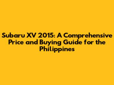 Hey there, car enthusiasts! Thinking about snagging a Subaru XV 2015 in the Philippines? You've come to the right place! This guide is your one-stop shop for everything you need to know about the Subaru XV 2015 price in the Philippines, along with some insider tips to help you make a smart buying decision. We'll dive into the different trim levels, what to expect in terms of pricing, and even some cool features that make this car a solid choice. So, buckle up, and let's get started!