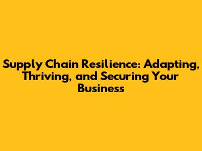 Supply Chain Resilience: Adapt, Thrive, And Secure Your Business